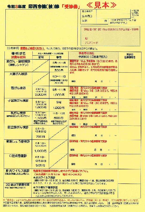 *42歳以上で未受診者の方、印西市に検診問診表を請求の上ご来院ください。 |